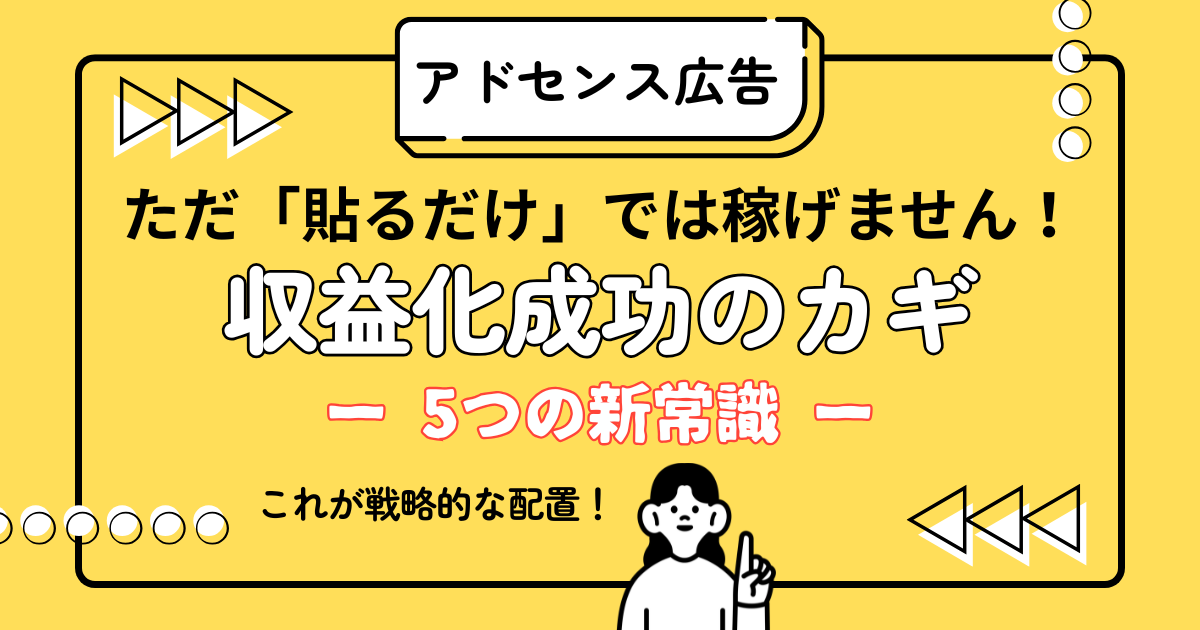 記事を読み終わるころには、「なんとなく貼る」から「収益を考えて配置できる」ようになるはずです。
